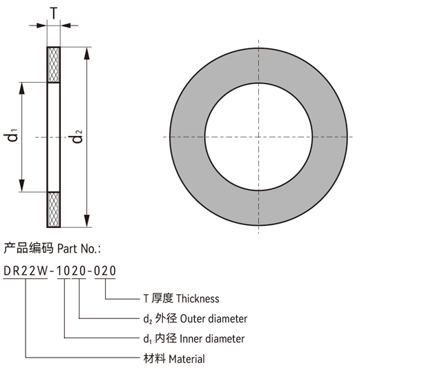 DR22 耐磨垫片由三层组成,结合了低摩擦与高承载特性的滑动层和高强度玻璃纤维填充的中心承载层;