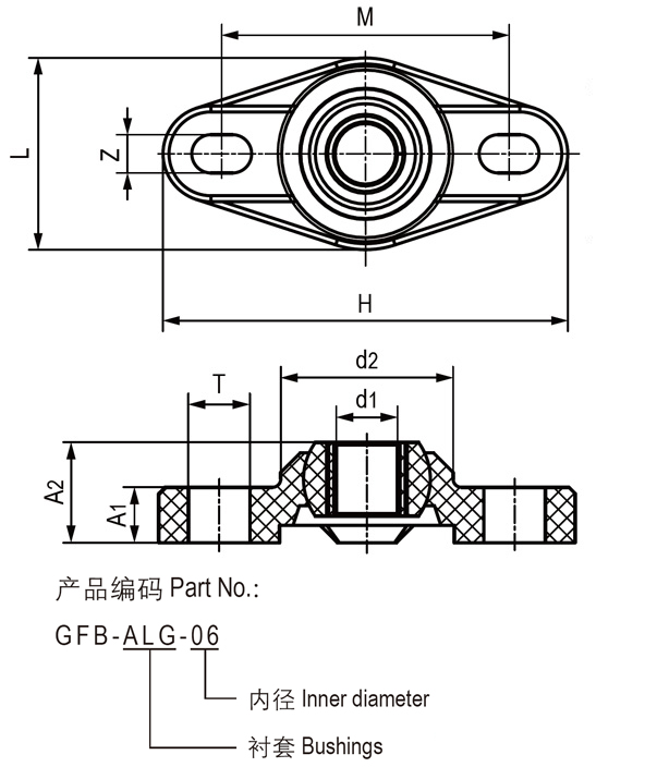 更多多种耐磨球体材料选择:M80, M81, EPB13 基座材料硬质镁铝合金 自润滑、免维护 易安装 补偿中心误差 消除边缘载荷 小安装空间实现较好的耐磨性能