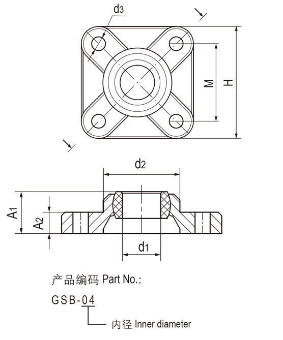 产品编码 | 最大轴向静载荷 | 最大径向静态负荷 | 最大静态转矩-孔 | 重量 | ||