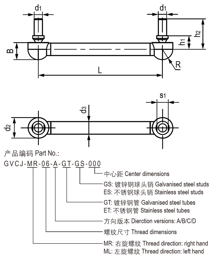 产品编码 | 球头销-最大静态轴向拉负荷 | 球头销-最大静态径向压负荷 | 连接管-最大静态抗拉应力 | |||