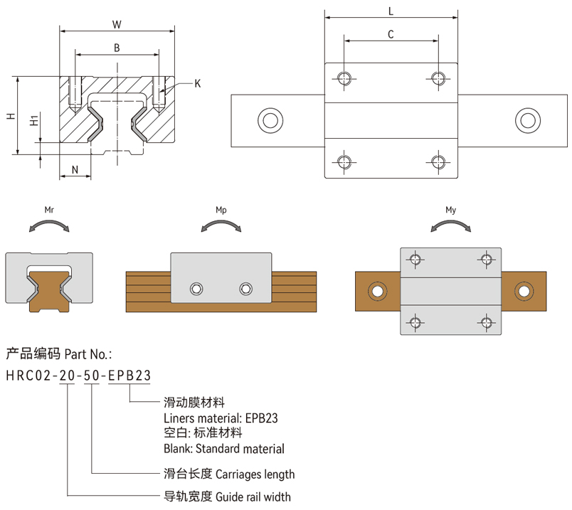 产品编码 | 最大静载载荷 Coy+=Coy-=Coz+=Coz- | 最大静力矩 [N·M] | 重量 | ||