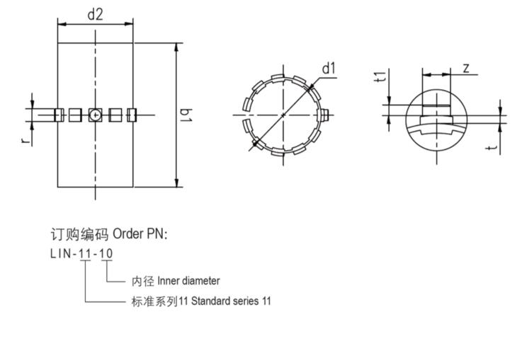 产品编码 | 轴径 [mm] | D H7 [mm] | B h10 [mm] | r+0.5 [mm] | t+0.05 [mm] | Z+0.2 [mm] | ![]() |