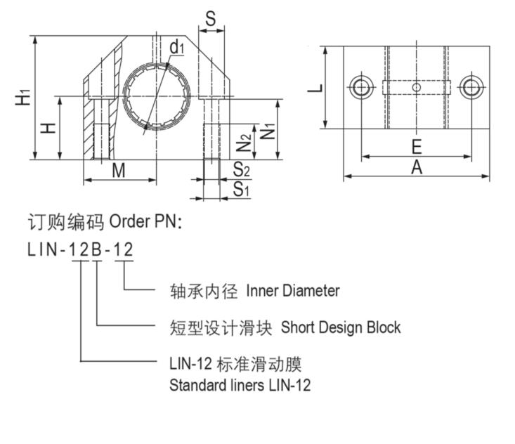● 内部安装标准短设计滑动膜LIN-12