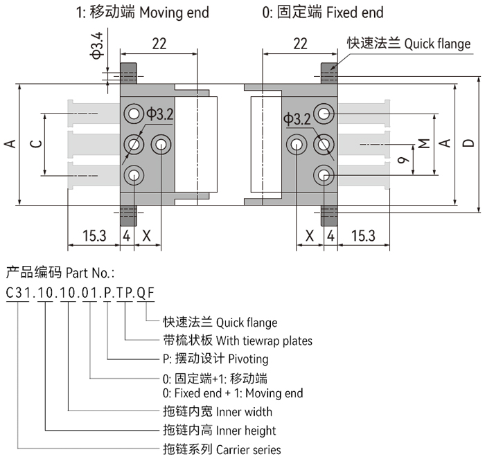 *A1|A2|A3|A4订购预装配拖链请注明安装方式