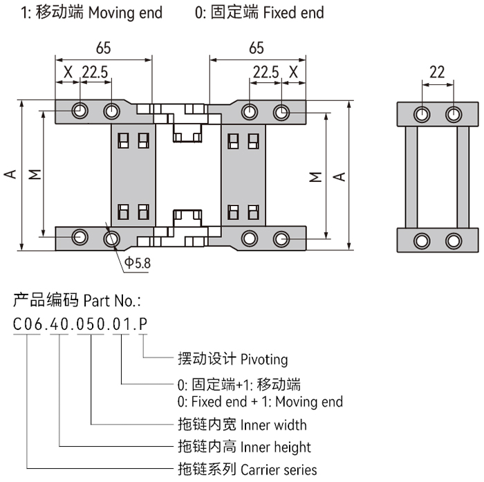 *A1订购预装配拖链请注明安装方式