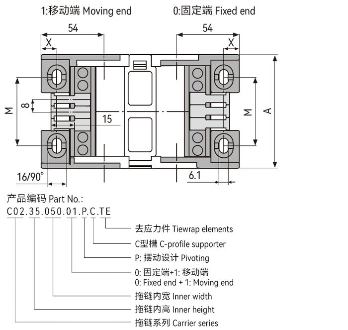 *A1|A2|A3|A4订购预装配拖链请注明安装方式