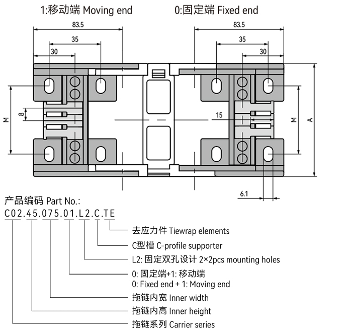 *A1|A2|A3|A4订购预装配拖链请注明安装方式