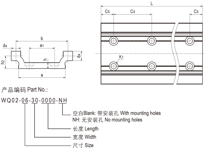 ● 方型铝合金双轨;