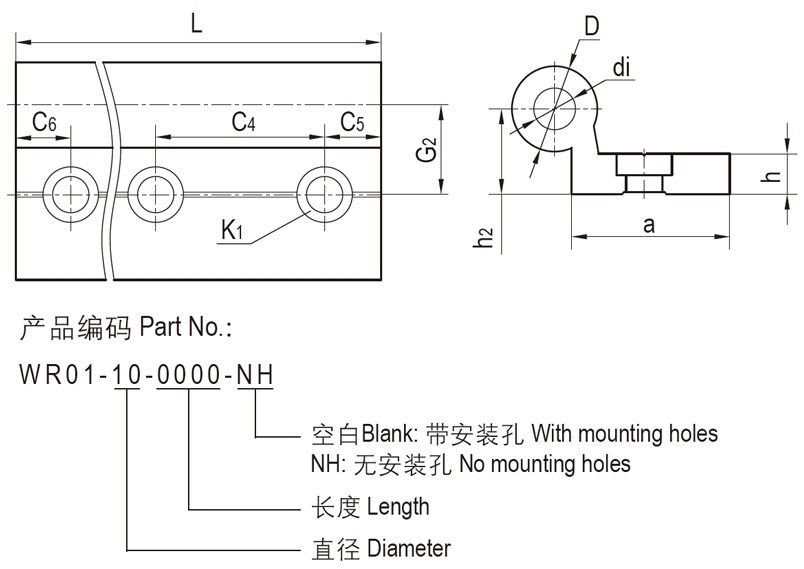 ● 铝合金单圆导轨,硬质氧化表面;
